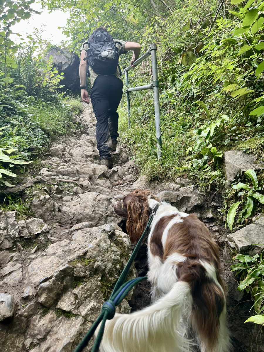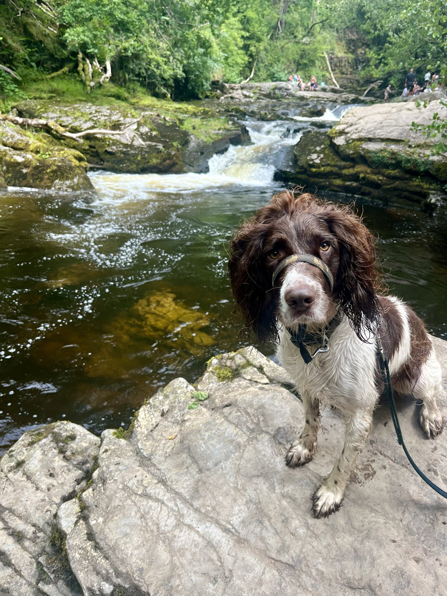 On the longer route that we took there were some quite steep sections which you wouldn't need to worry about when doing the shorter version. Plenty of off lead opportunities outside the busiest sections of the walk if you can trust your dog around the water, Riley tends to get in the water and refuse to come out so we had him on lead for a large chunk of the day otherwise it would have taken a year to get around. It is a super busy Brecon Beacons destination, be prepared for a lot of people in the main section of the walk but don't let this deter you from going, the waterfalls are beautiful and in particular Sgwd Yr Eira is the one where you can walk behind the waterfall, its quite the experience.