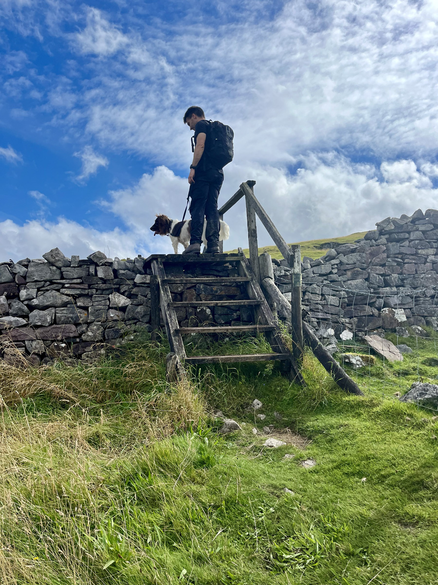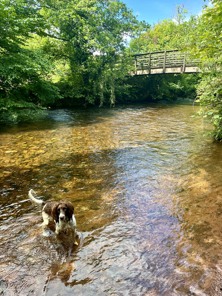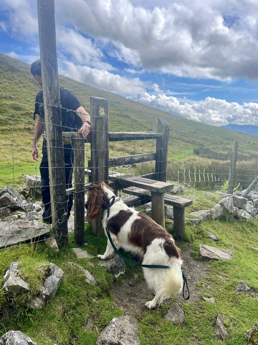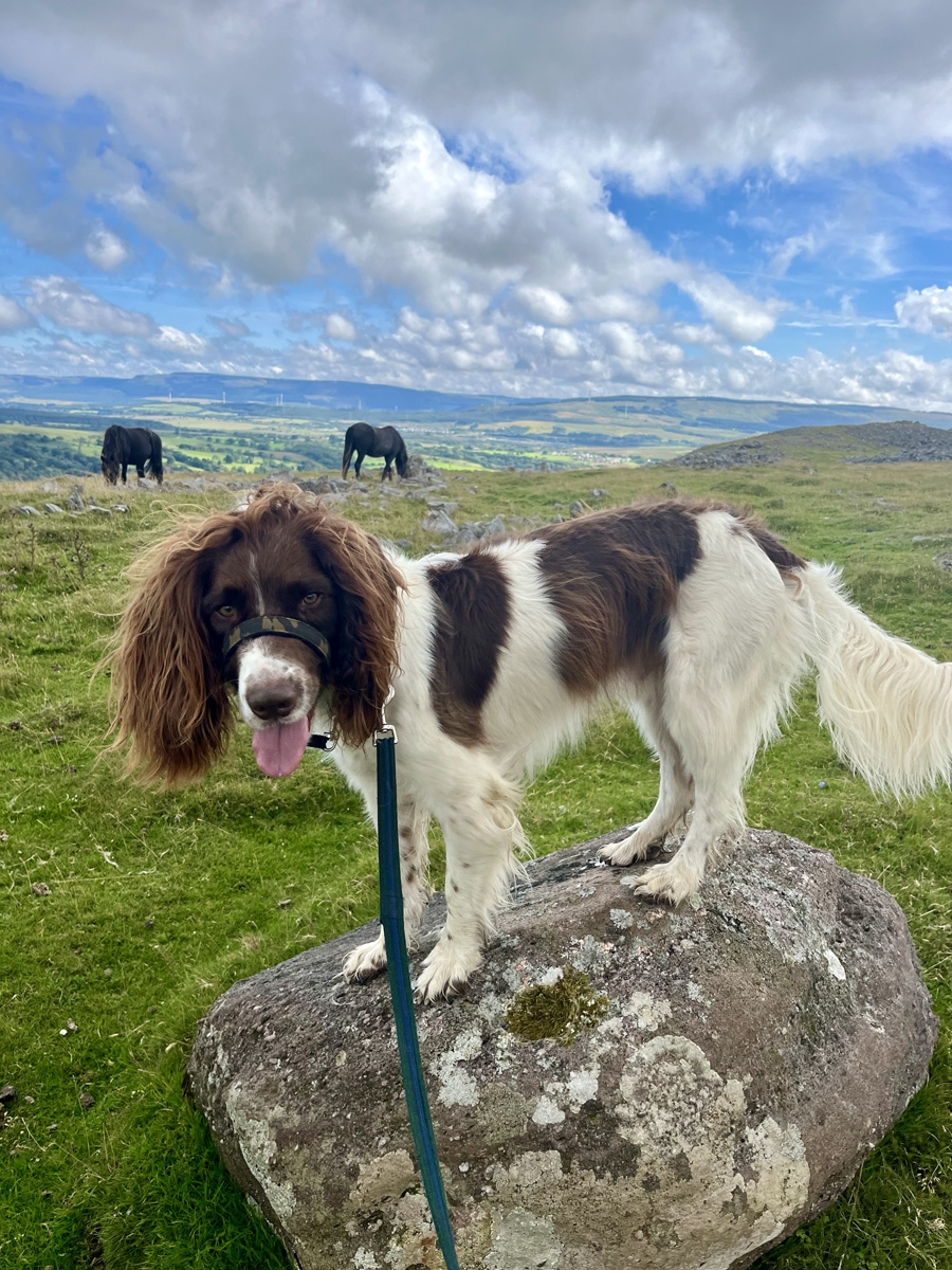 There are plenty of off lead opportunities on this walk, but I can imagine the route can get busy so obviously use your common sense in busy areas. There is a wooden man in the country park section of this walk, its a great photo opportunity for the dog, you can make it look like he's the pet parent. There's some great views from the stiles across the Brecon Beacons, and a trig point (Cribarth) if your a Trig Bagger!