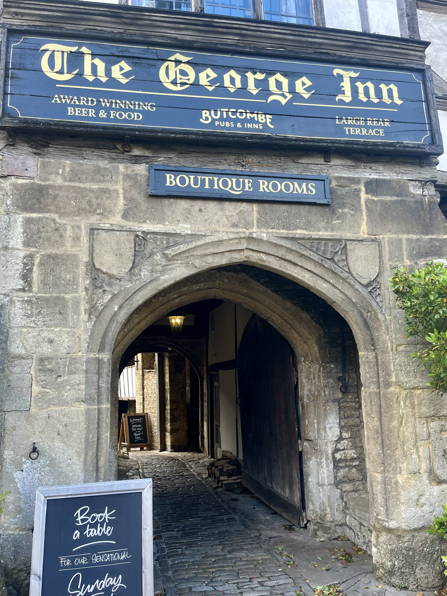 The George Inn is on this circular route in the village of Norton St Phillip. Boasts that its been serving beer for over 700 years. Beautiful pub with a large beer garden at the rear.